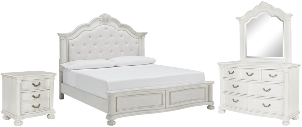 Transform your inner sanctum into a haven of timeless elegance and comfort. This traditionally styled bedroom package is adorned in a classic antiqued white finish, highlighted by serpentine-shaped fronts with thick decorative moulding and stylish reeded bun feet. Talk about relaxed refinement.