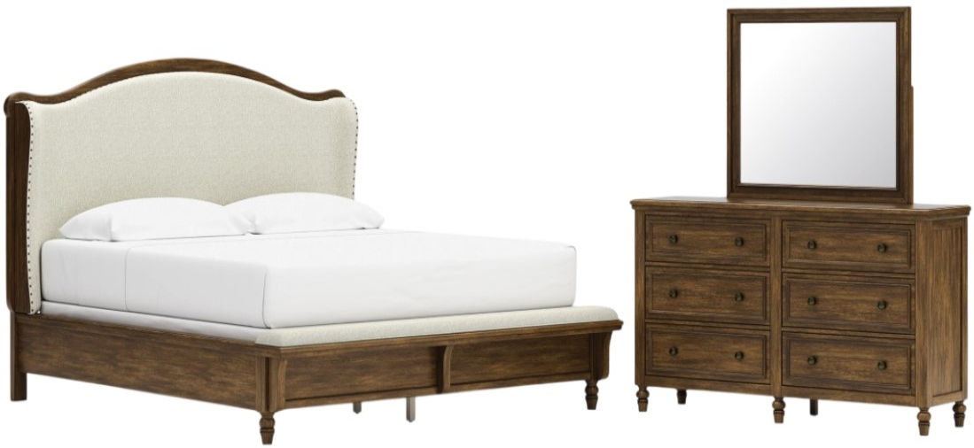 *King panel bed, dresser and mirror only, any other products that may be displayed are sold separately. Images may not represent the actual size and color in images may differ in person. See store for the actual color or finish.