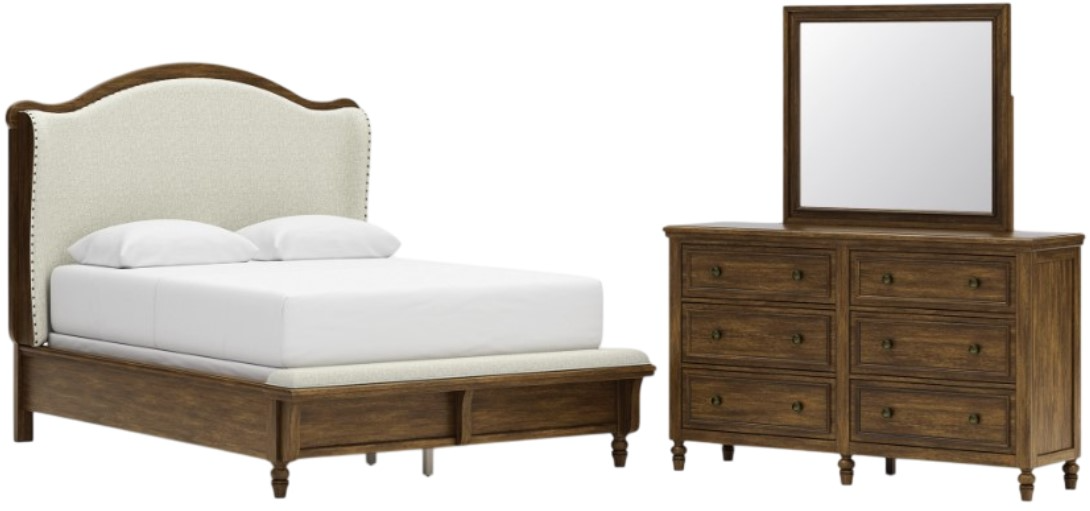 *Queen panel bed, dresser and mirror only, any other products that may be displayed are sold separately. Images may not represent the actual size and color in images may differ in person. See store for the actual color or finish.