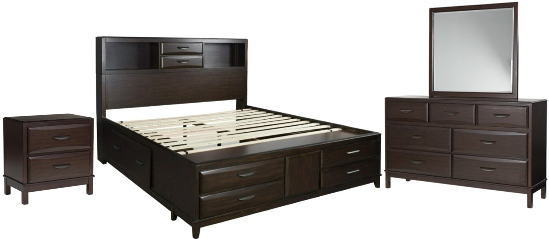 A rich, metropolitan finish. Unbeatable function. With this king storage bed, it’s a breeze to create a casual contemporary hideaway full of style and convenience. It combines thoughtful craftsmanship and handy storage, with assorted drawers to help you maintain an organized and clutter-free space.