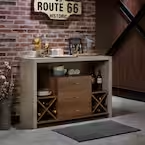 With an industrial concrete inspired structure and sleek chrome handles, you get the best of both worlds of rustic charm and modern luxury. Features like center drawers, open shelving, and built-in wine racks provide the perfect space to entertain with ample storage and personality galore. This buffet server is the perfect addition that will bring compliments.Read More