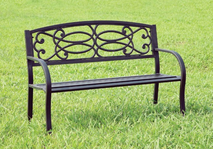 Enjoy the outdoors by lounging on this park bench made from durable steel. A unique backrest design distinguishes this bench from the rest.