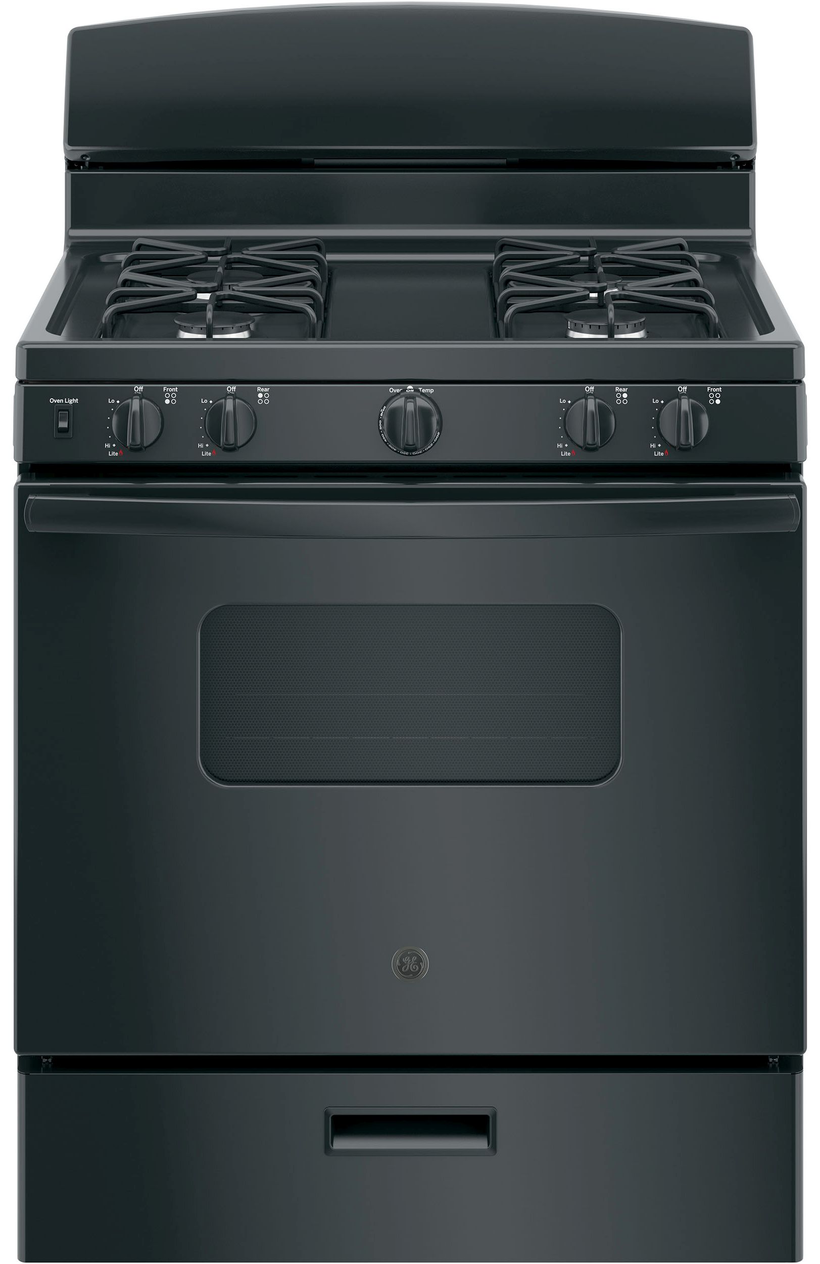 GE® 30" Black Free Standing Gas Range with 4.8 Cu. Ft. total capacity, sealed cooktop burners and heavy duty gatesRead More