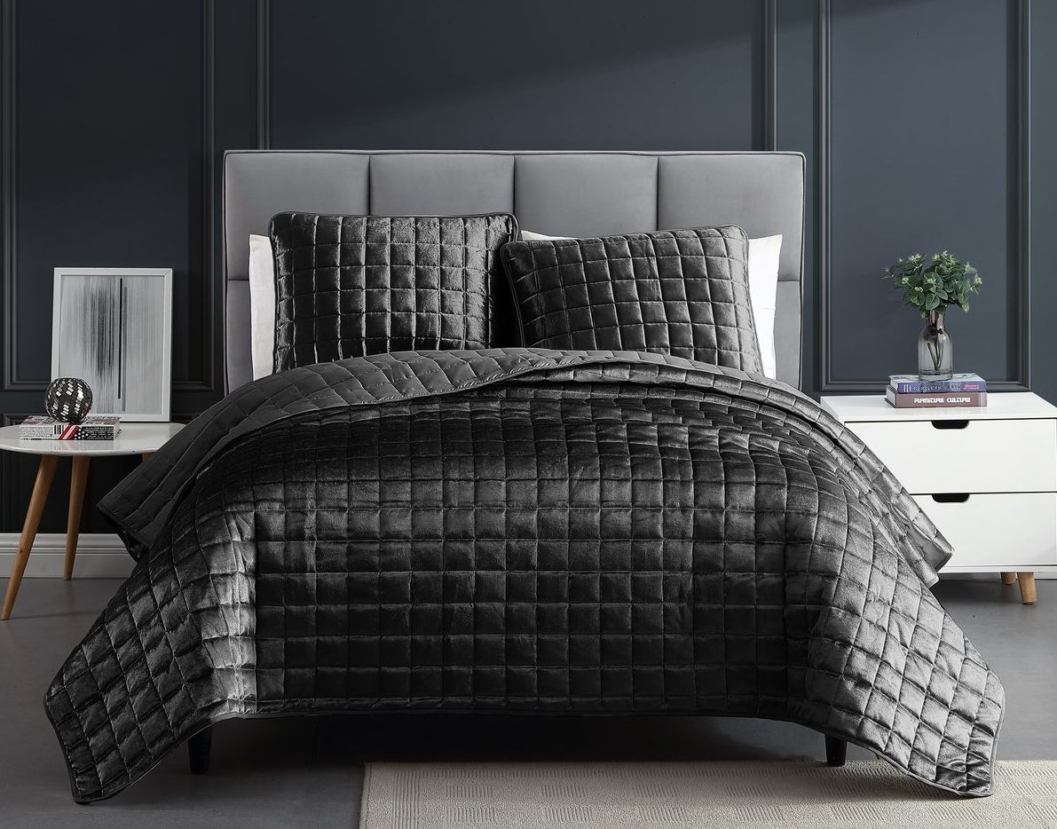 The Hallmart Collectibles Luxe 3-Piece Full/Queen Graphite Coverlet Set will add style and class to your master or guest bedroom. Clean lines, beautiful gray fabric, and square quilting on the coverlet and shams add a touch of simple elegance and the slight shine is just an added bonus.Read More