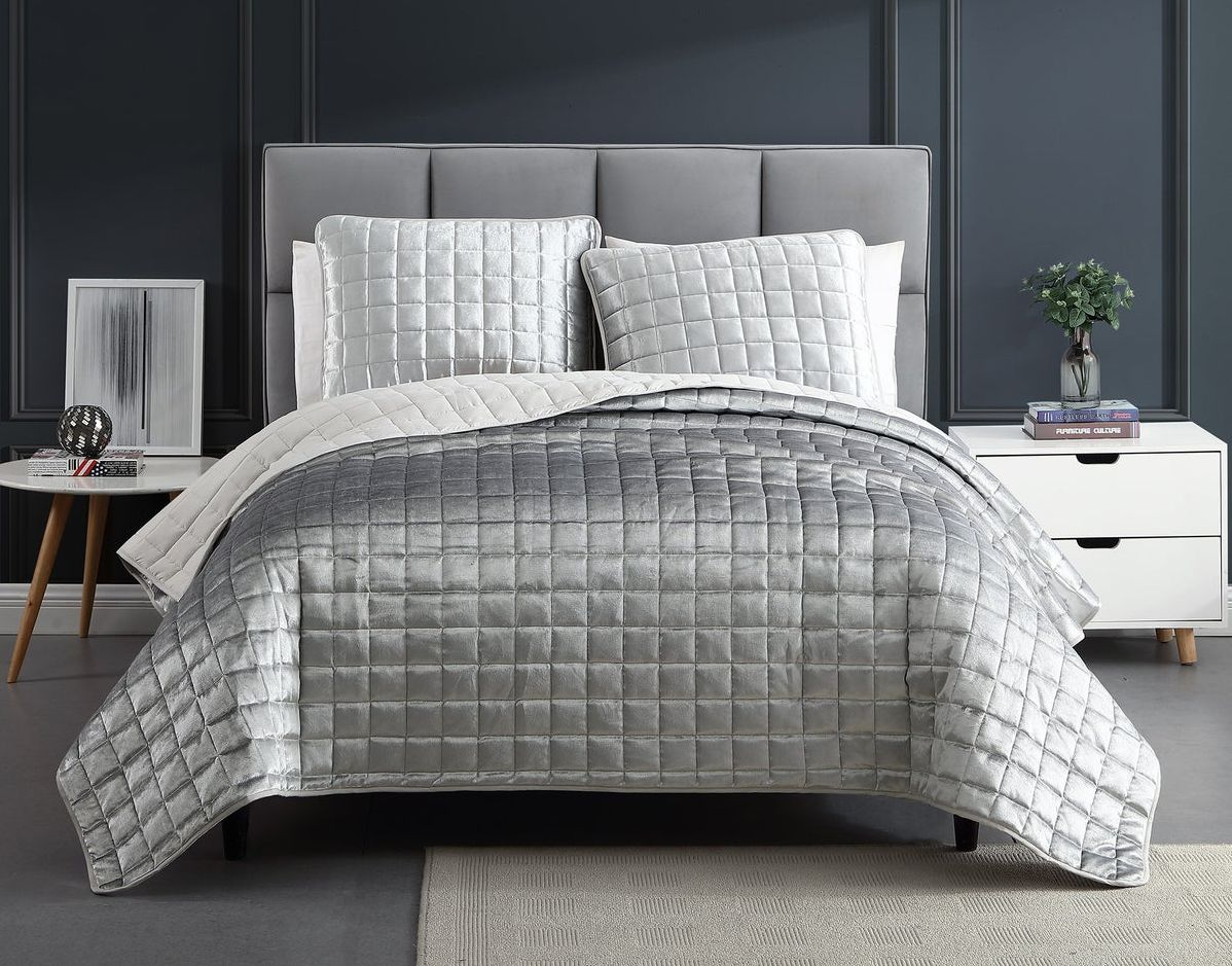The Hallmart Collectibles Luxe 3-Piece Full/Queen Silver Coverlet Set will add style and class to your master or guest bedroom. Clean lines, beautiful gray fabric, and square quilting on the coverlet and shams add a touch of simple elegance and the slight shine is just an added bonus.Read More
