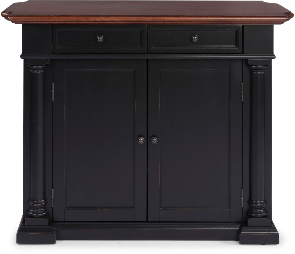 Americana design featuring classic solid wood carved columns. Crafted of hardwood solids with engineered wood panels, shaped solid wood top is finished in an aged cherry, with the body of the Island in a Black painted finish with aged rubbed through edges. Assembly required.Read More