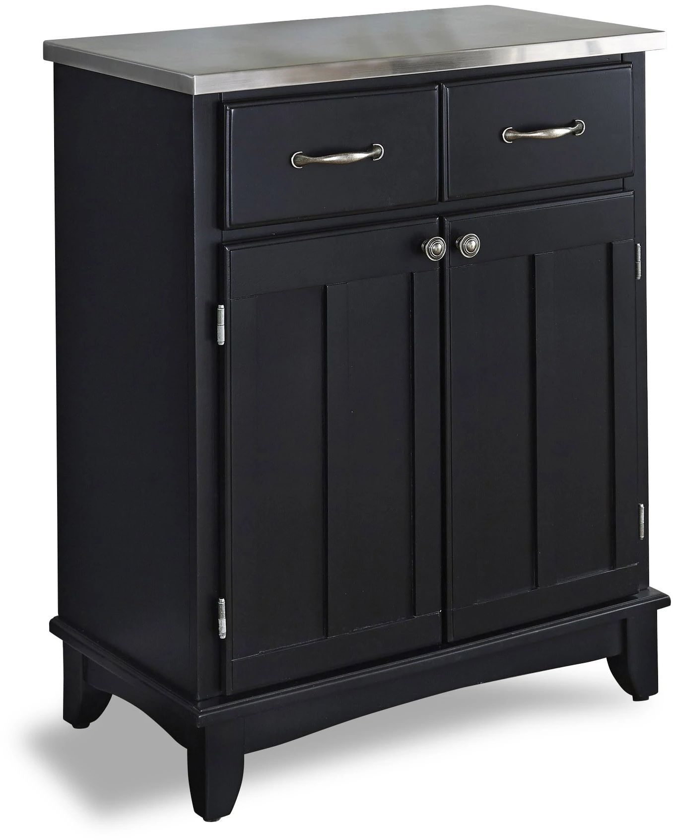 Inspire awe and praise, as you prepare and serve meals with the Walker Black with 18-gauge Stainless Steel Top by homestyles. This small buffet server makes your kitchen look even more inviting with its sturdy hardwood construction and attractive wood veneers in a lavish black finish.Read More