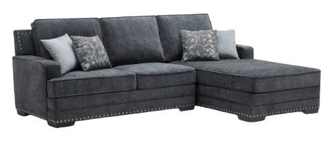 The Milton Green Stars 2-Piece Dark Gray Right Hand Facing Sectional with Chaise combines modern style with functional design. Crafted with meticulous attention to detail, it offers durability and elegance. Its dark gray upholstery adds sophistication to any living space. With a right-hand facing configuration and a chaise lounge.Read More
