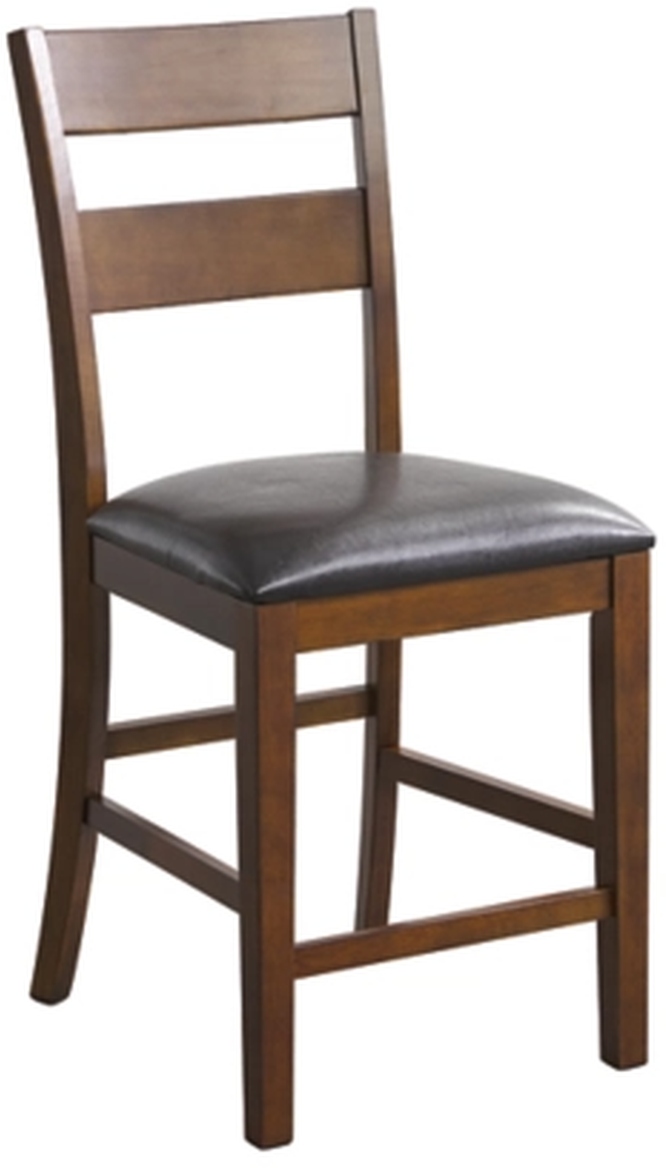 Warm, classic and chic, this counter height bar stool is always in fashion. Black faux leather upholstery on the cushioned seat satisfies your taste for comfortably cool refinement. Its brown finish is sure to complement your eye for style, from casual to contemporary.Read More