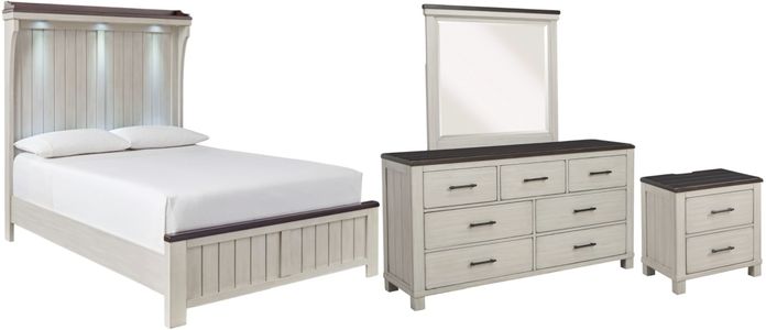 Includes Darborn King Panel Bed with Mirrored Dresser and Nightstand