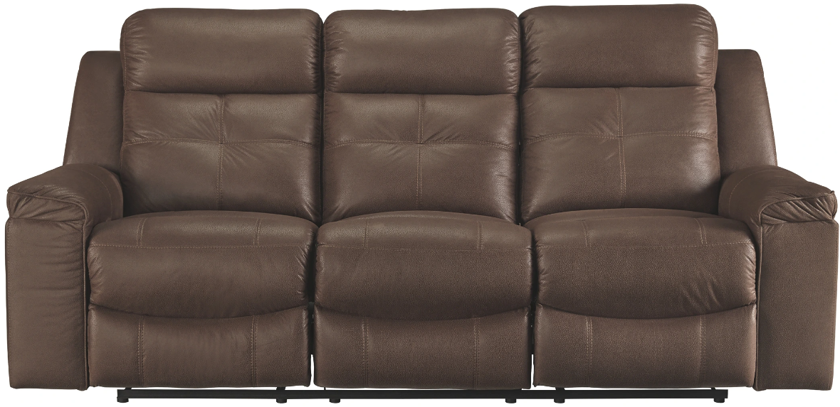 Rustic character comes forth in this warm brown reclining sofa. Designer stitching adds a fashion-forward touch to its soft cushions. Faux suede fabric speaks to your knack for superior-quality materials. The sofa’s high back provides ample support as you take a break from your feet for a bit.Read More
