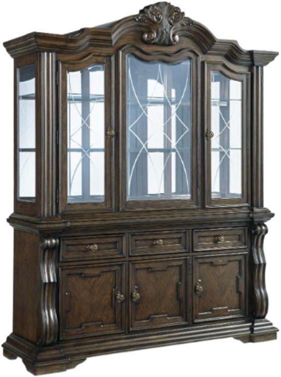 From its ornamental appliques to its large scale, this dining buffet with hutch makes a bold statement. With decorative pilasters, beveled glass windows and plenty of storage, the opulent piece wows with stunning style. The look is timeless. The feel? Right at home.Read More