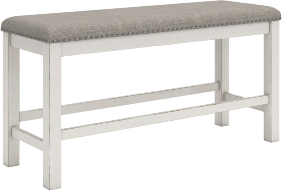 The Robbinsdale dining bench is sure to impress come mealtime. With its antiqued white finish and light gray upholstery with nailhead trim, modern farmhouse-style dining has never been so fashionable. All that's missing is you and your family.Read More