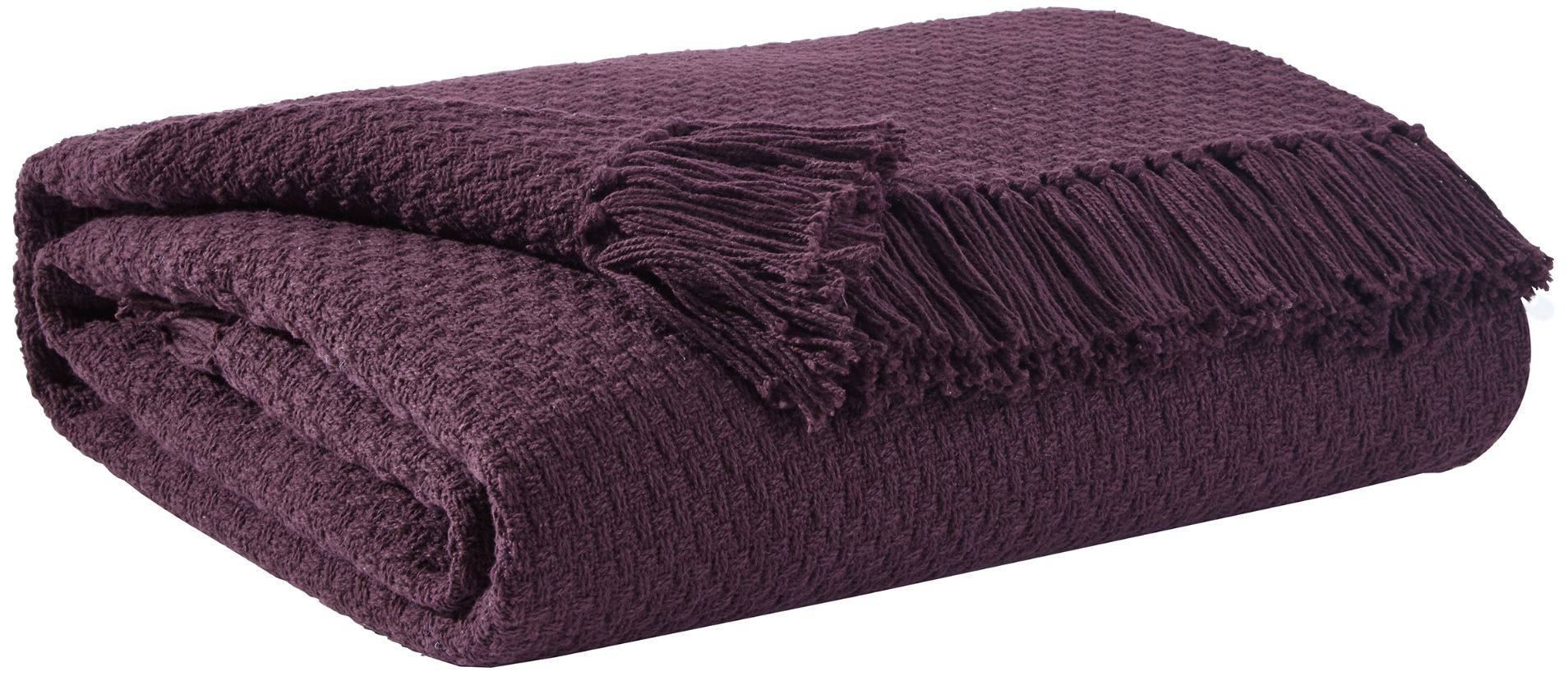 Wrap yourself in color, comfort, and cozy texture with this throw in deep purple. A treat for the senses, this cotton throw is beautified with a waffle weave design and fringe details for a flirty touch.
